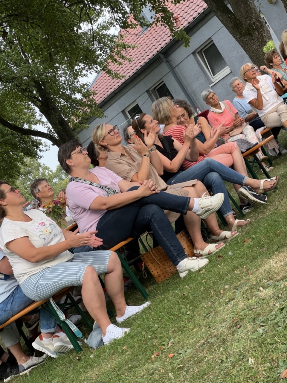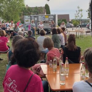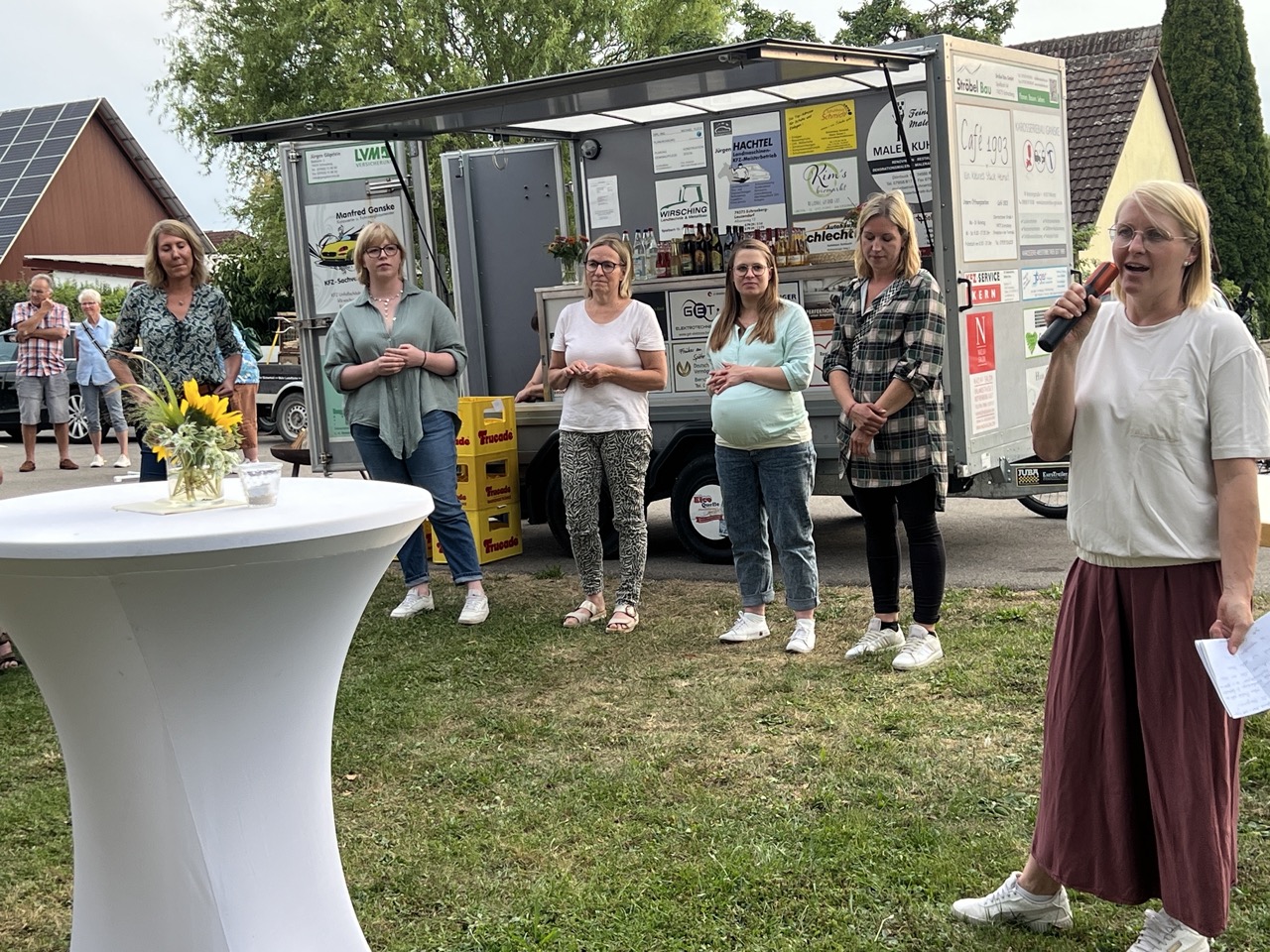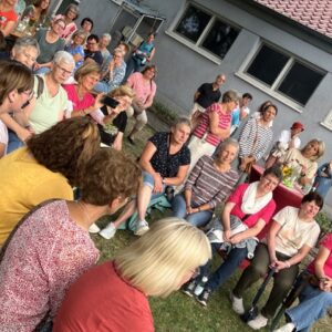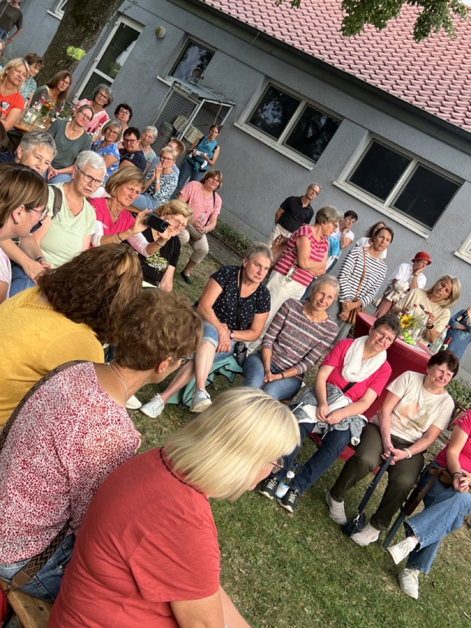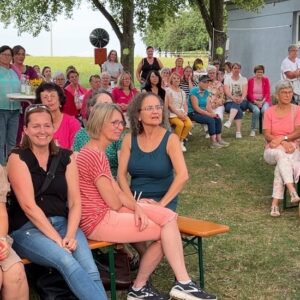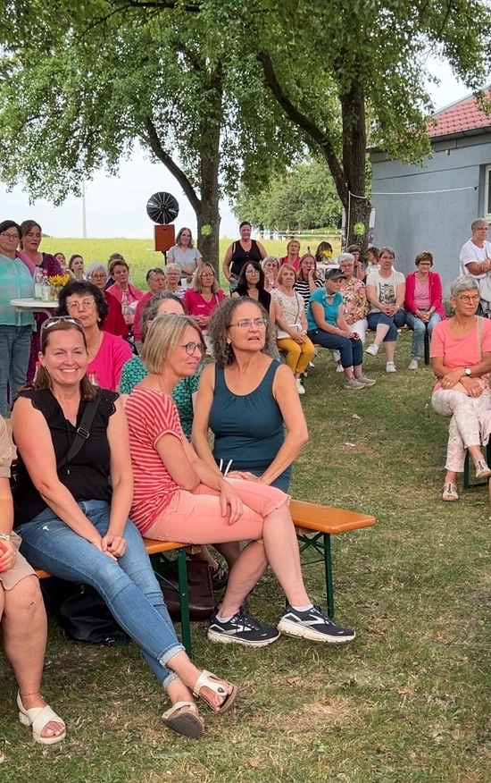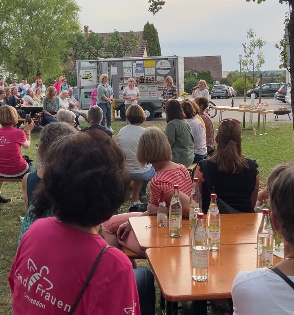 Die Landfrauen verschiedener Ortsvereine haben den Abend sichtlich genossen. Unter dem Motto „Von Frau zu Frau – Landwirtinnen und Erzeugerinnen erzählen persönlich, was sie bewegt – ehrlich, direkt und mitten aus dem Leben auf dem Land“ sprachen die vorgestellten Landwirtinnen über ihre Leidenschaft für den Beruf, Ziele und Herausforderungen. Organisiert von Sigrid Dürr (Leuzendorf) und Sonja Blumenstock (Kleinallmerspann) wurde viel gelacht, Gemeinschaft genossen und die Regionalität hoch leben lassen. Es war ein lauer Sommerabend in bester Gesellschaft wie er im Buche steht.