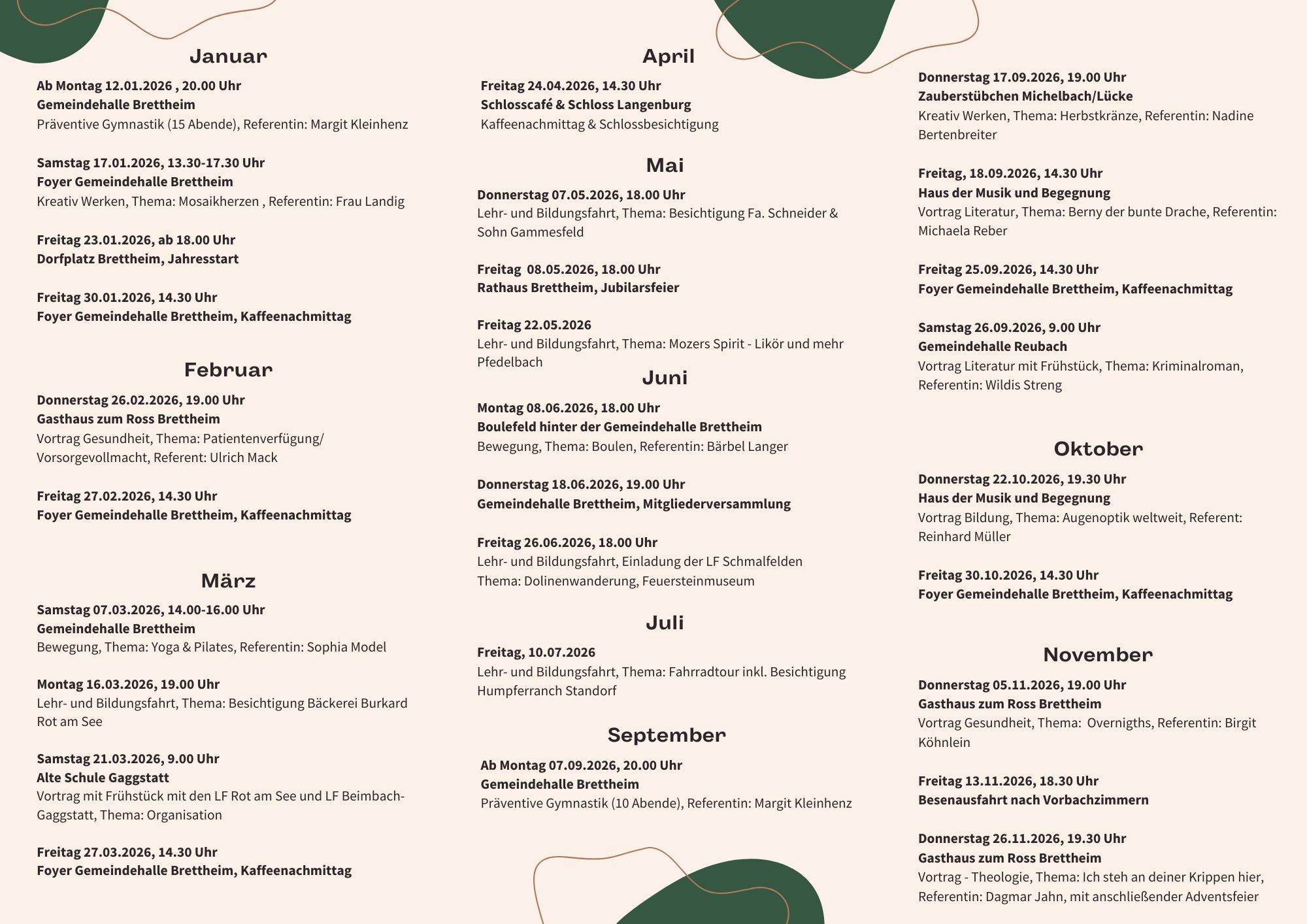Das Bildungsprogramm wird an alle Mitglieder und zusätzlich an die Haushalte der Gemeinden Brettheim, Hegenau, Herbertshausen, Hilgartshausen, Kleinansbach, Kühnhard und Reubach verteilt.