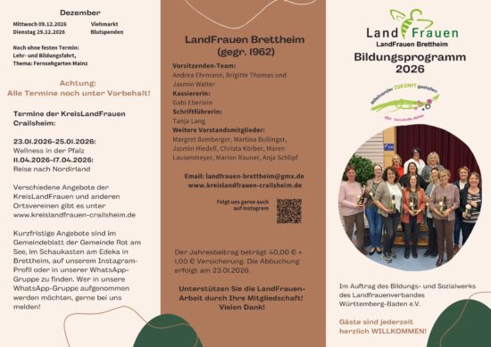 Die LandFrauen Brettheim gibt es seit 1962 und wir sind ca. 160 Mitglieder aller Altersgruppen.