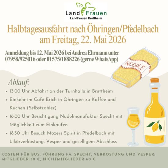 Wer Lust hat mitzufahren bitte bis Dienstag, 12.05.2026 bei Andrea Ehrmann anmelden unter 07958/925016 oder 01575/1888226 (gerne WhatsApp).